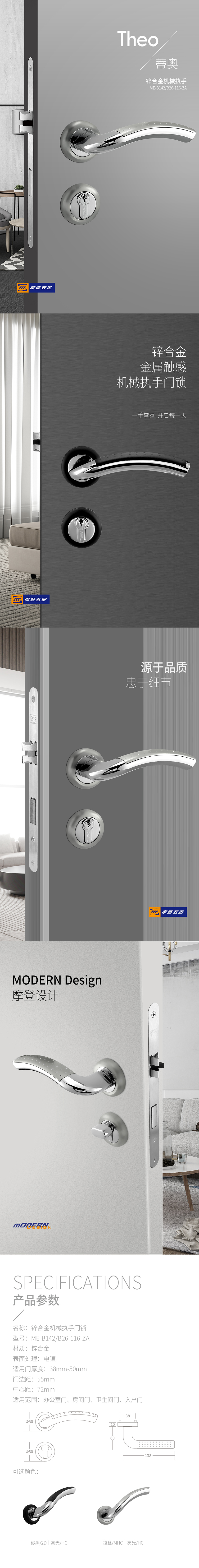 • 產(chǎn)品系列:鋅合金分體門鎖